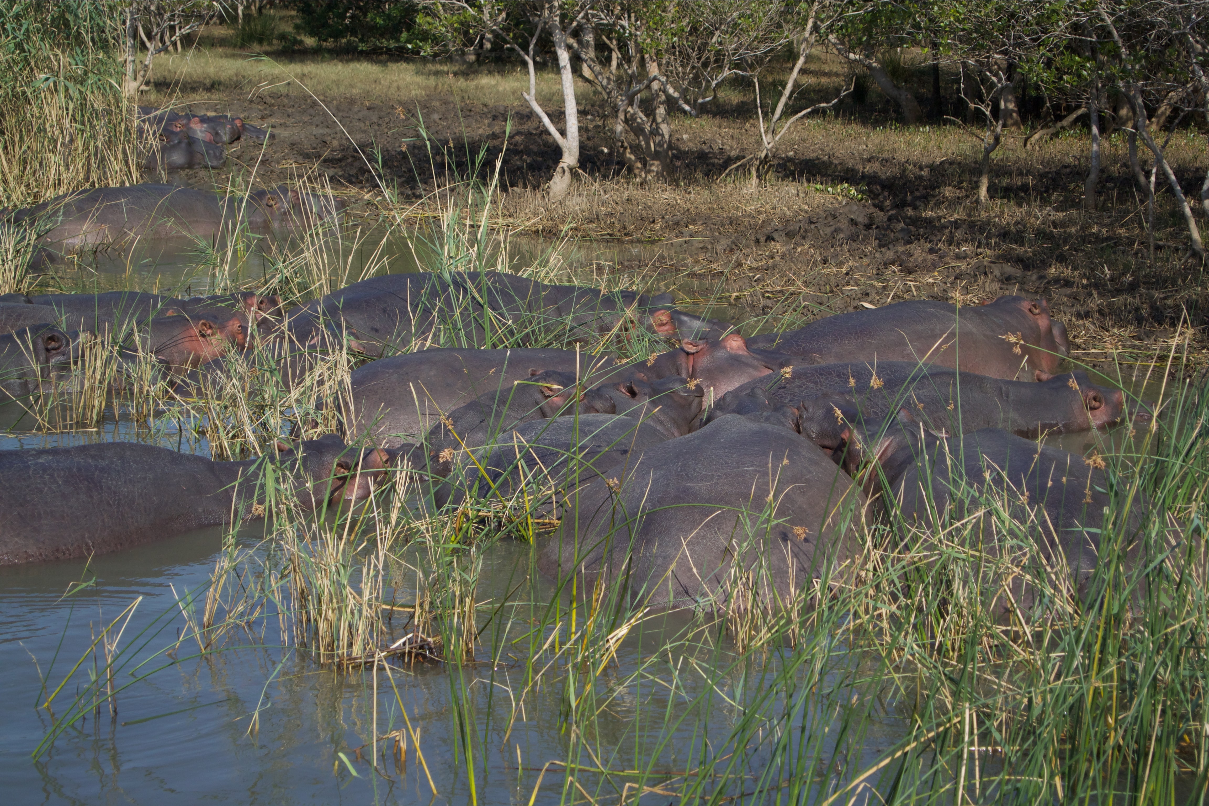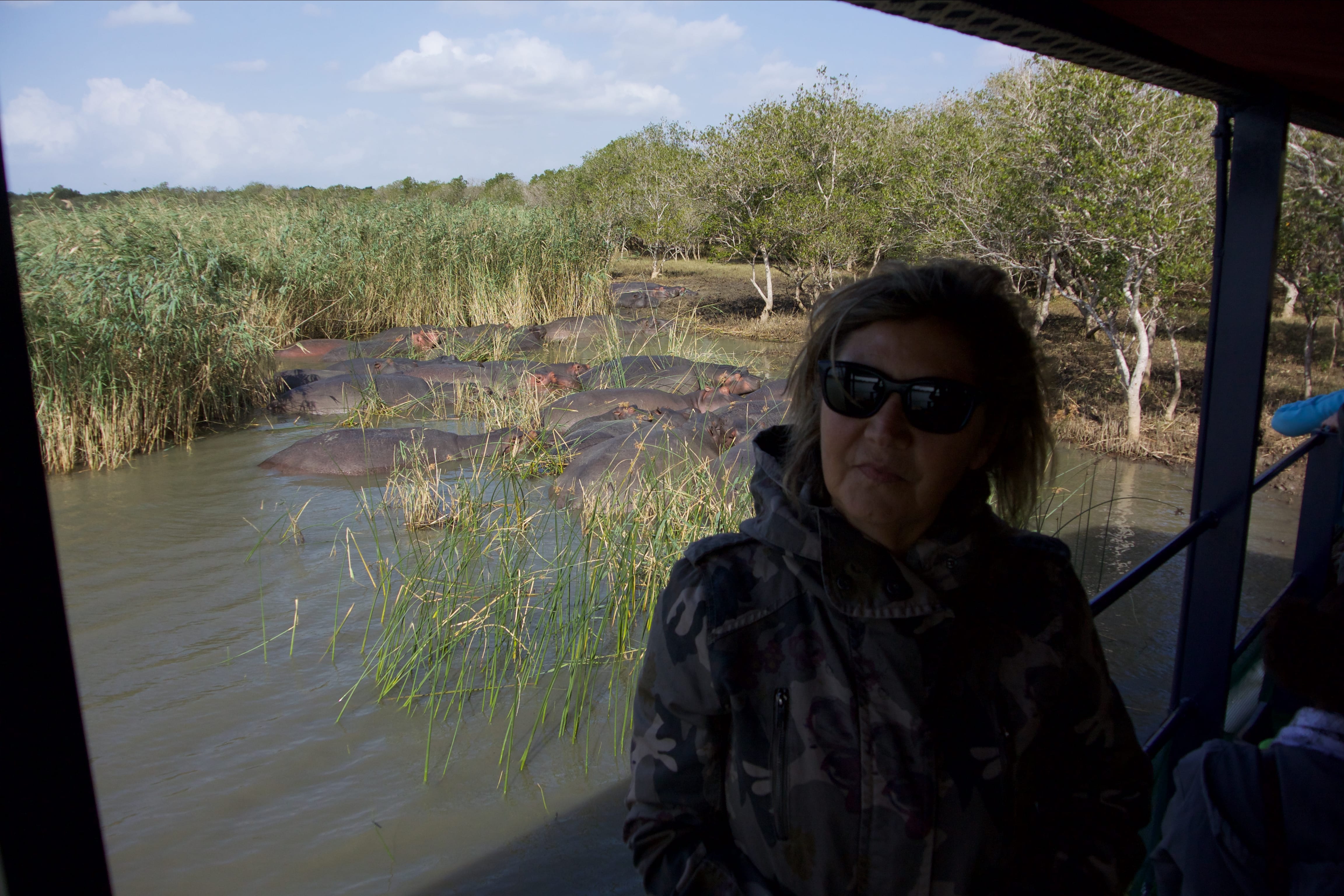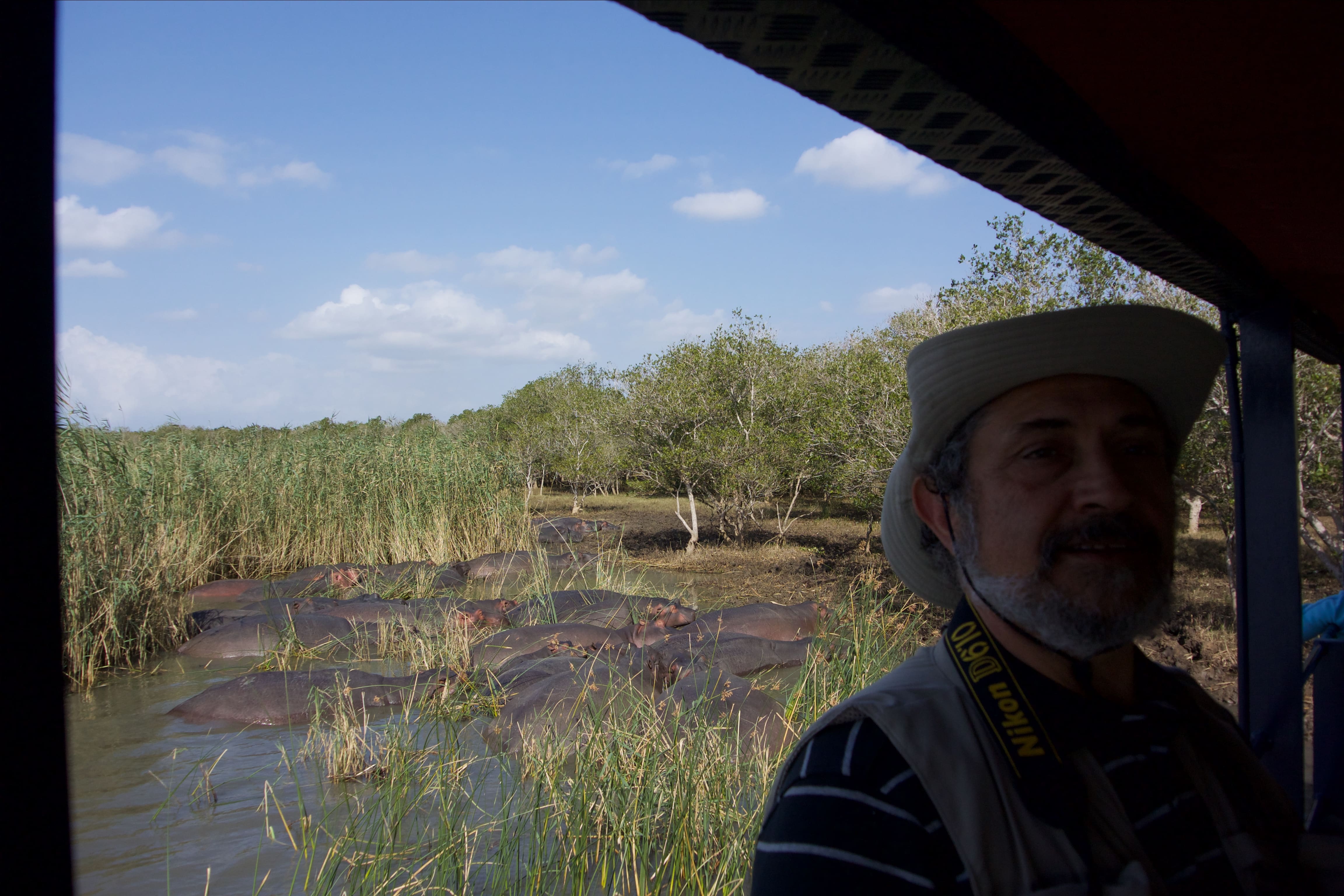 This morning we planned an exit by boat along the river to see the hippos and crocodiles. At 9:30 we are picked up and we reach the small port in five minutes, where a small boat awaits us. We climb in nine and we sit on normal plastic chairs anchored to the floor: hopefully good! A cheerful skipper takes us to places where hippos practically rest for the whole day waiting for dusk when they start looking for the various tons of grass that are used to feed them. We also see numerous crocodiles, a beautiful snake coiled on a branch and several birds. Stop for a coffee and a scones and then off to the marina. Returning to the hotel, we quickly set up the car and set off for the Isimangaliso park, which contains the large St. Lucia lake. A long ride through the park’s inner roads and paths up to Cape Vidal, huge sand dunes, endless herd of hippos, birds, and finally a beautiful series of fishermen waiting for a dip along the shores of the Indian ocean.