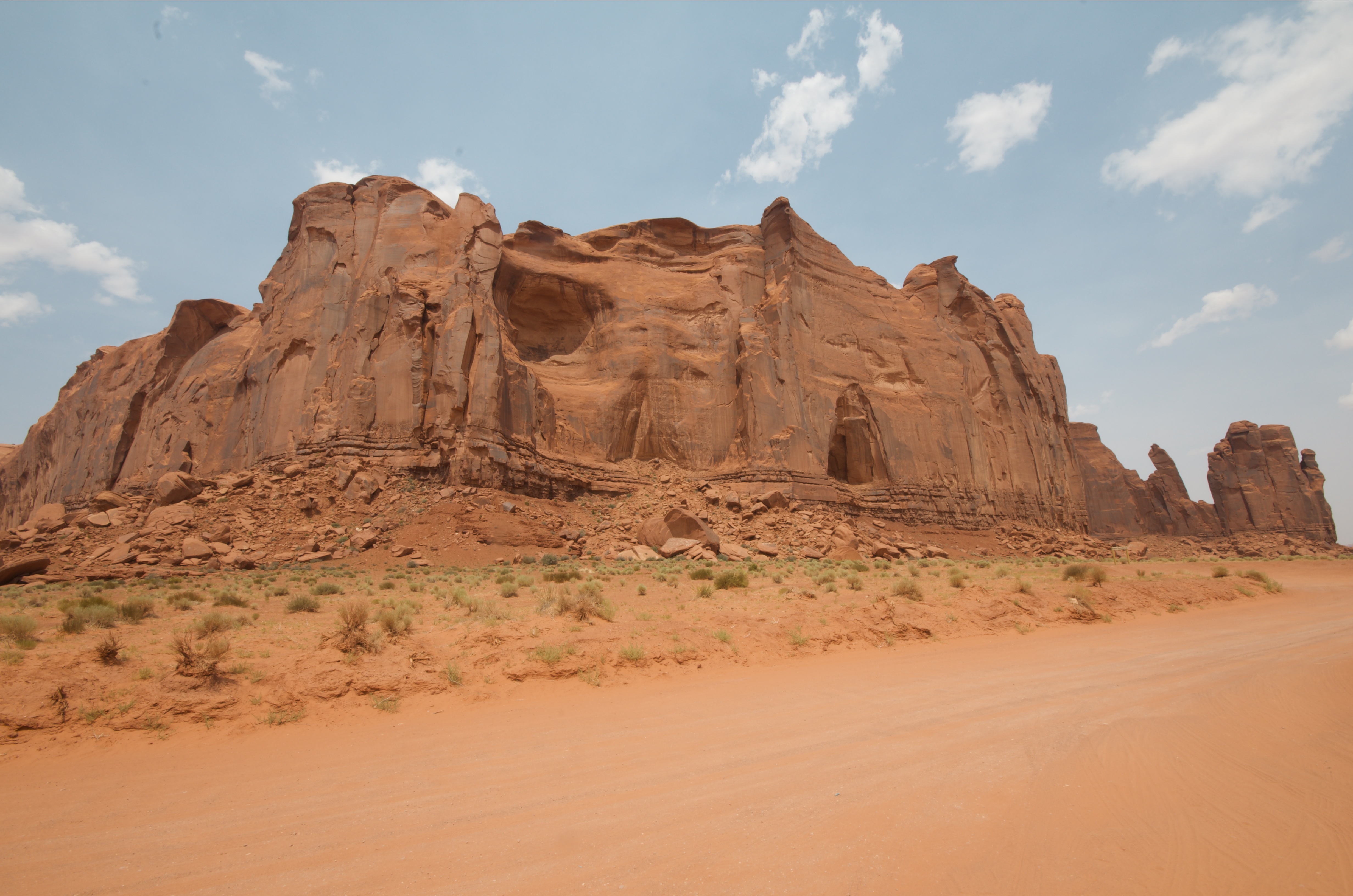 The scenery of the best and unforgettable western movies, wandering between pinnacles and rocks smoothed by wind. A little sand storm has taken us quickly to te exit.