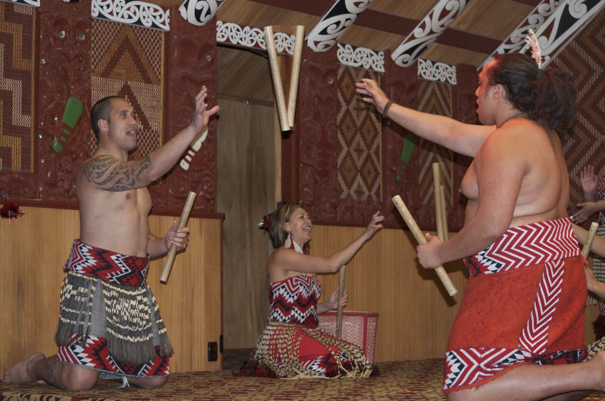 Guided tour of the geysers Pohutu, then witnessing the welcoming ceremony with the offer of peace and the Maori greeting (rubbing noses) a series of dances and songs features including the Haka or war dance.